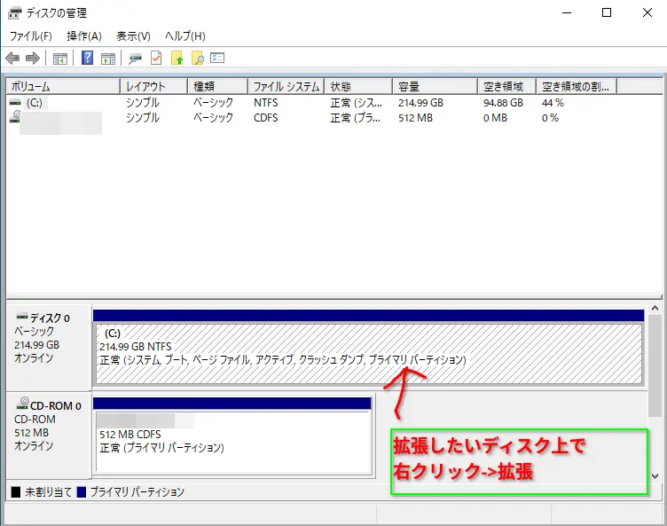 2 拡張対象のWindowsマシンを起動してボリュームを拡張する。↩︎