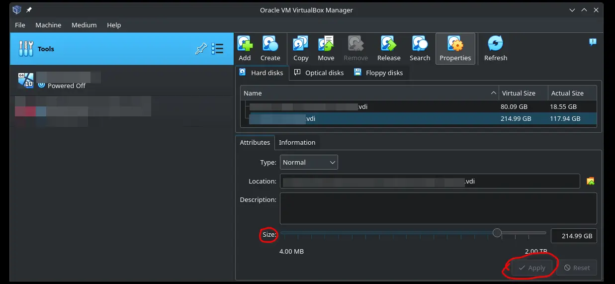 1 拡張したいドライブのVirtualBoxの仮想ディスクVDIの容量を拡張する。↩︎