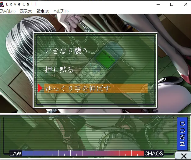 一般的に悪とされるような行動を取るとCHAOS(混沌)の方にゲージが上昇して、逆の場合はLAW(秩序的な意味合いだと思われる)のほうにゲージが減少する。