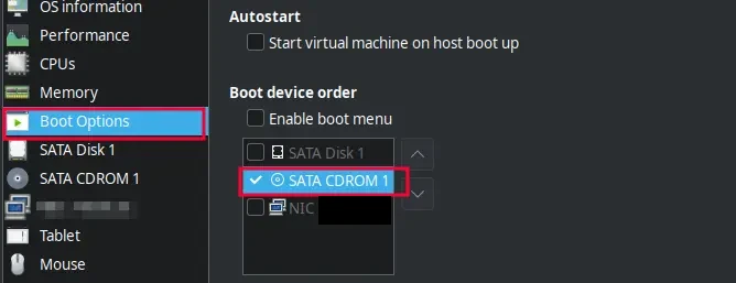 virt-managerの設定から、ブートオプションをもとに戻す。
