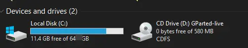 gpartedのisoをディスクドライブに突っ込む。
